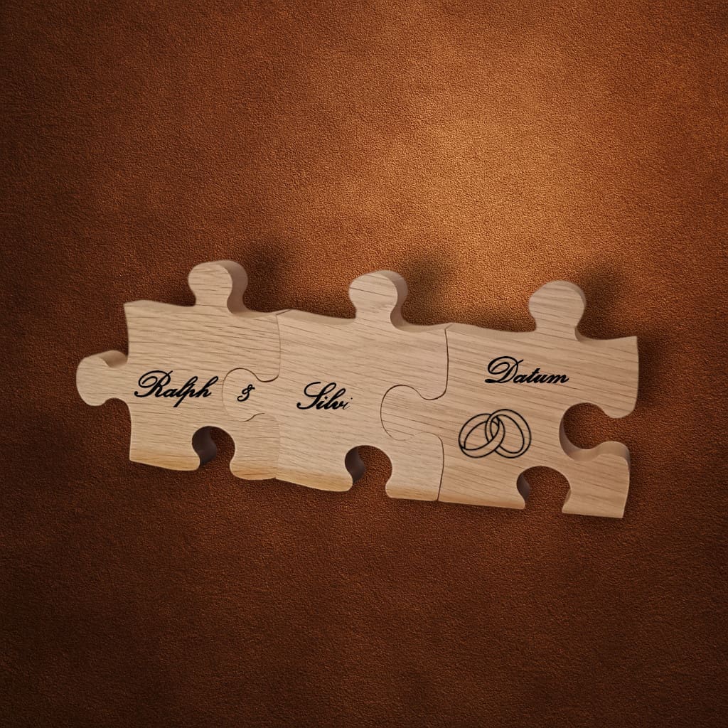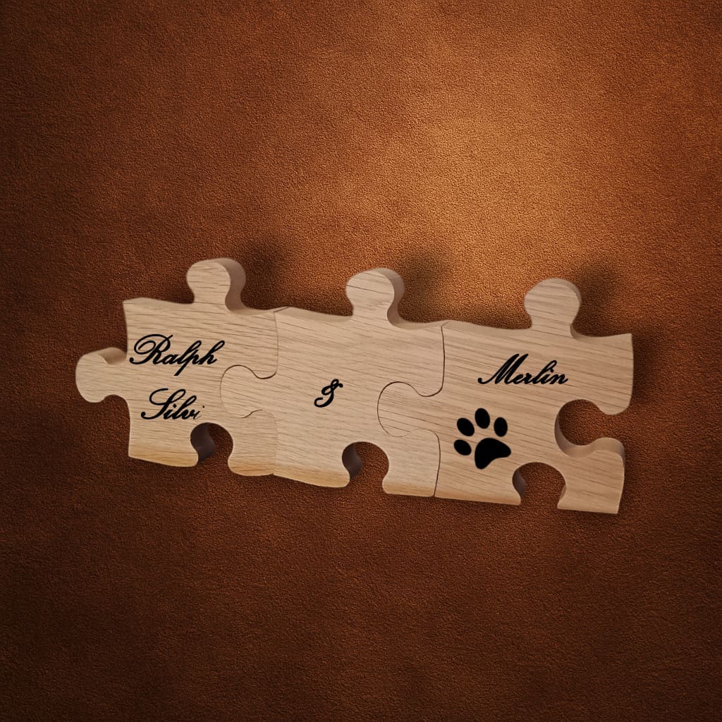 Das Puzzleteil aus Eiche mit Wunschgravur ist mehr als nur Dekoration – sie sind ein Symbol für Zusammengehörigkeit und Liebe. Ob als Geschenk zur Hochzeit, zum Jahrestag oder als Erinnerung an dein Haustier: Die individuell gravierten Holzpuzzle erzählen eure Geschichte – Stück für Stück.
